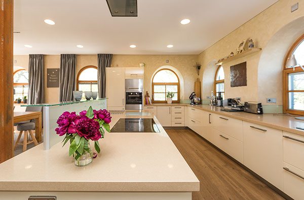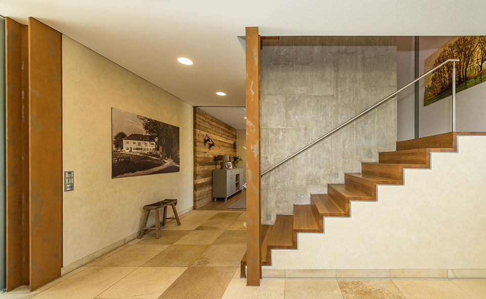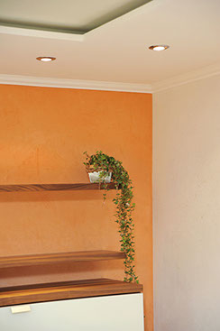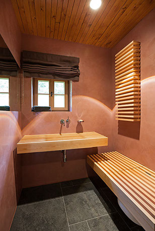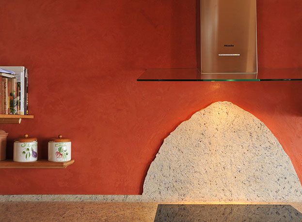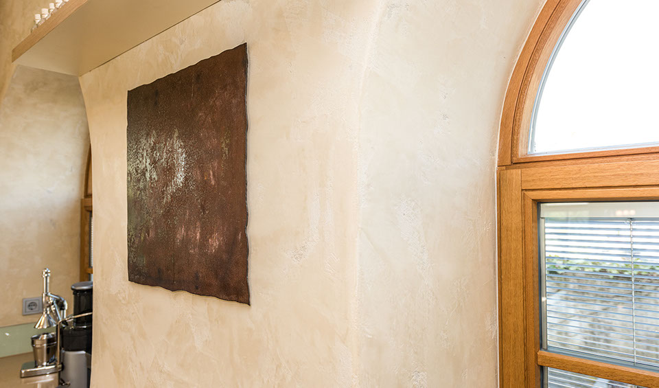 Kalkputze sind mit kalkechten Pigmenten auf Eisenoxid Basis abtönbar und eröffnen somit weit reichende, individuelle Kompositionsmöglichkeiten in Bezug auf Form und Farbe.